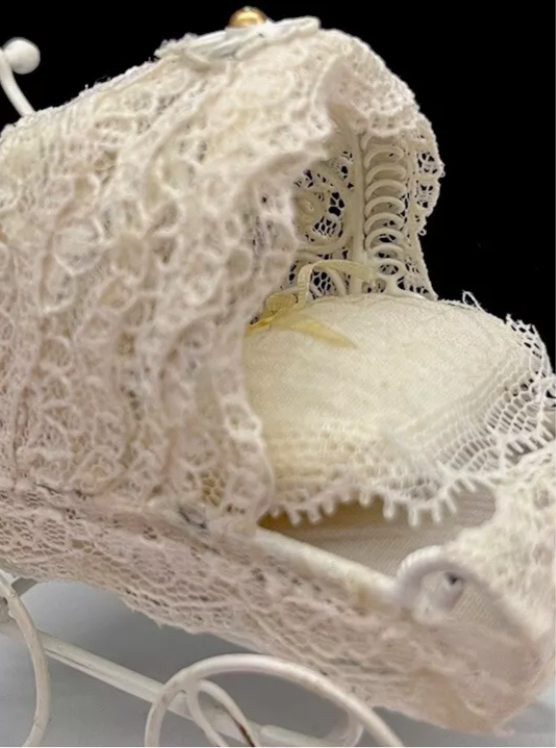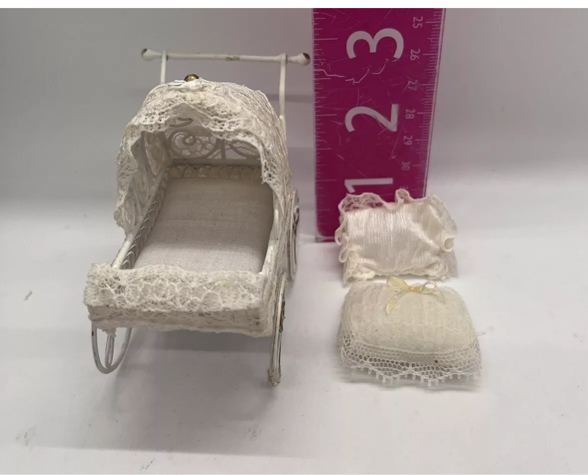Dolls house metal pram and bedding
