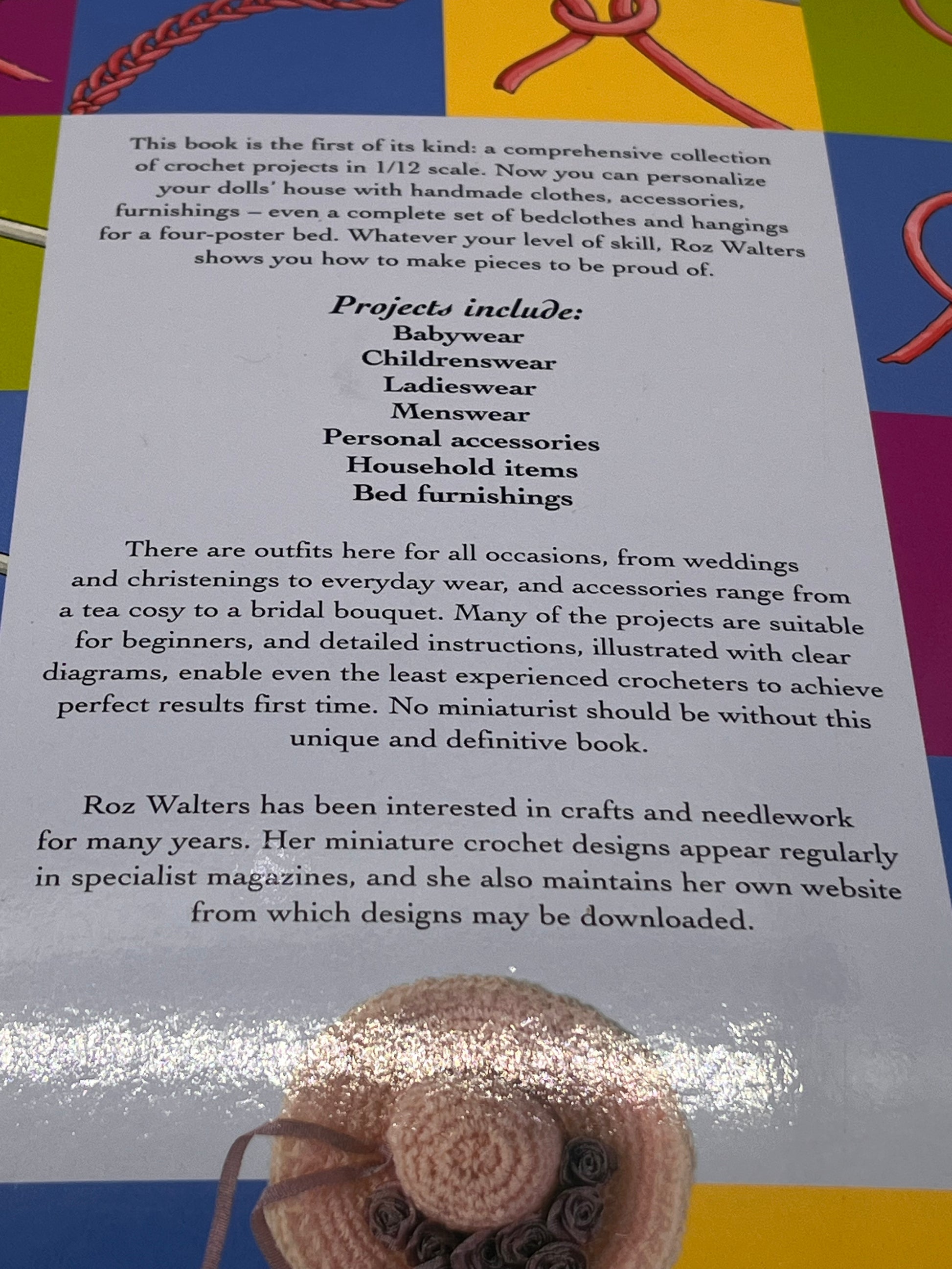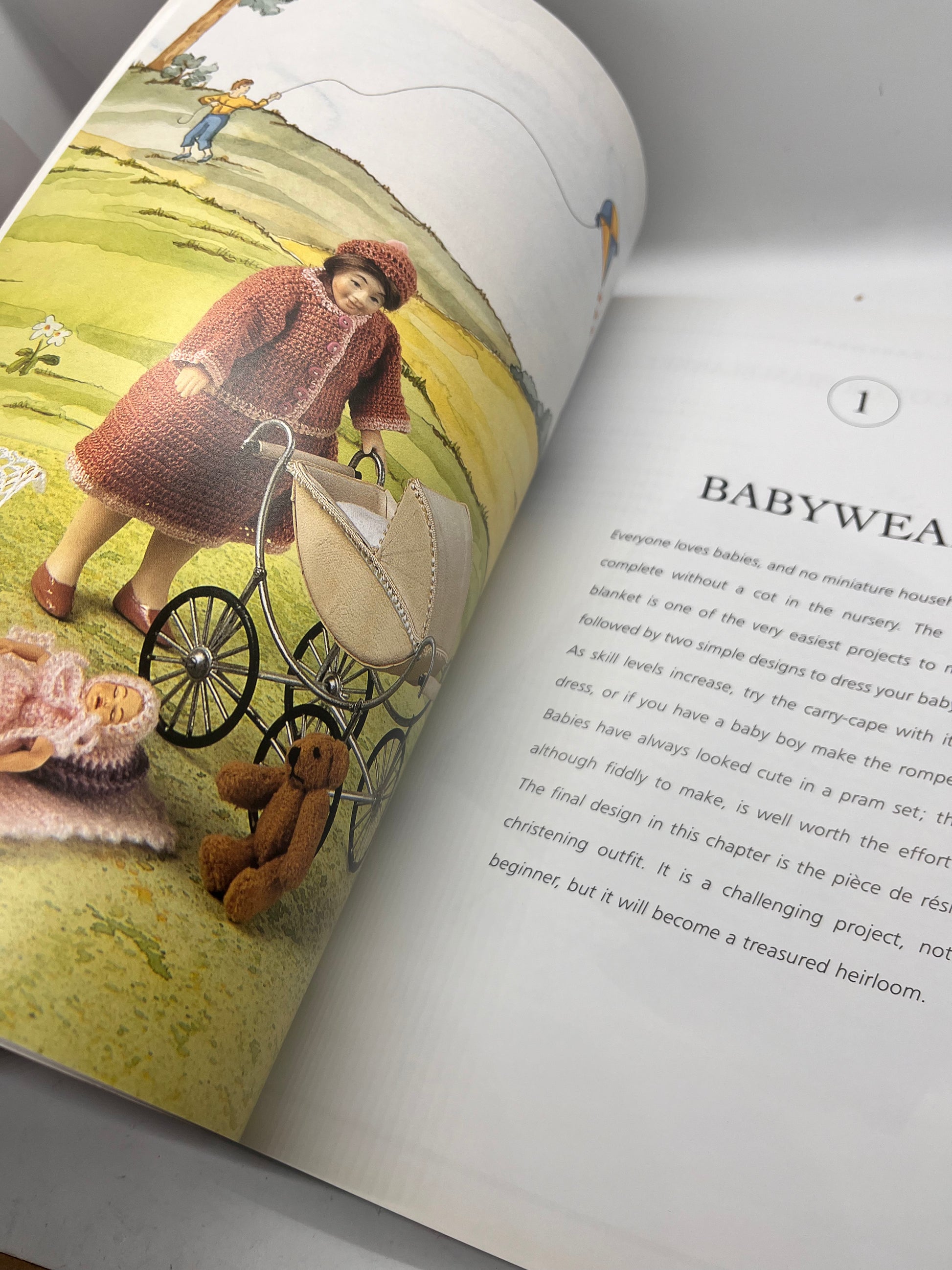 Dolls house miniature crochet book, wool needles and tiny buttons